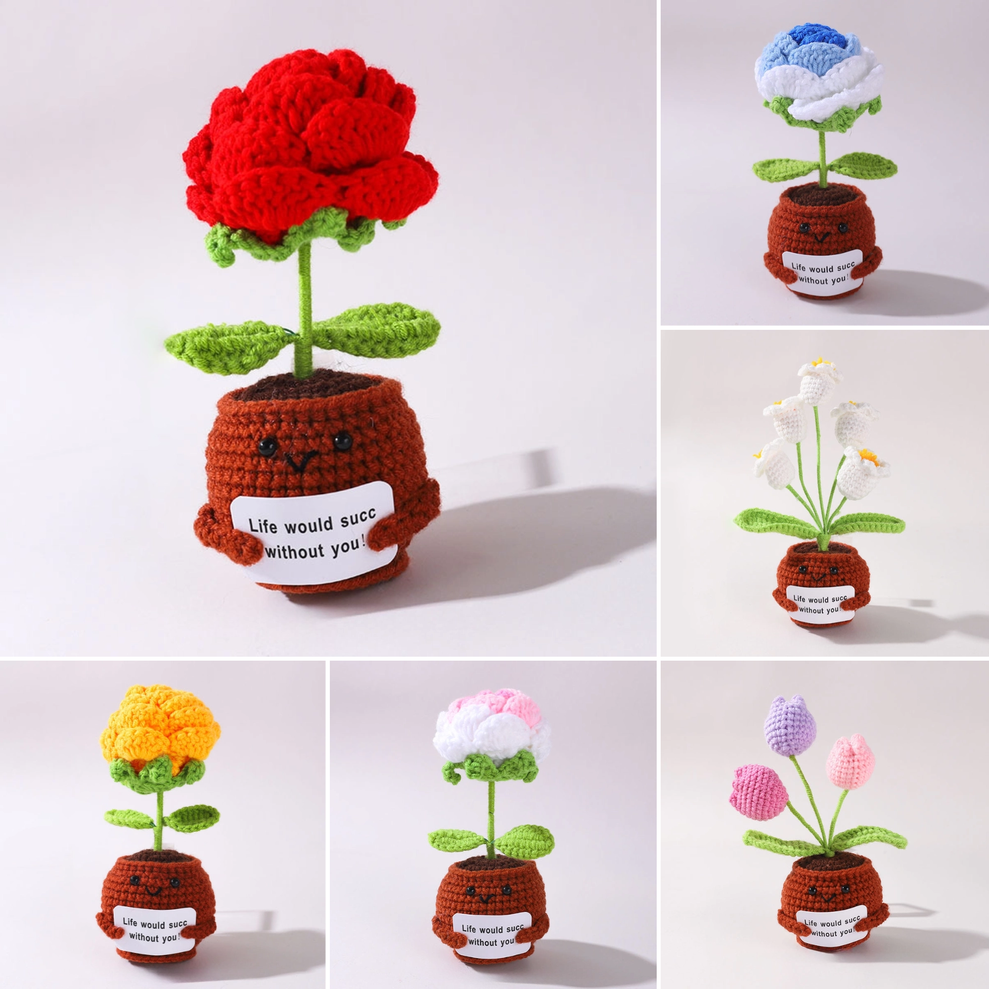 ✨Bring joy, comfort, and a splash of color into any room with this Adorable Emotional Support Plant Gift. 💖Featuring beautifully handmade crochet versions of a rose and heart, each plant is housed in a charming "Life would succ without you" pot, making it the perfect gift for teachers, friends, or anyone who could use a little extra cheer. 🎁These delightful crochet flowers serve as both a comforting presence and a charming piece of desk decor.
