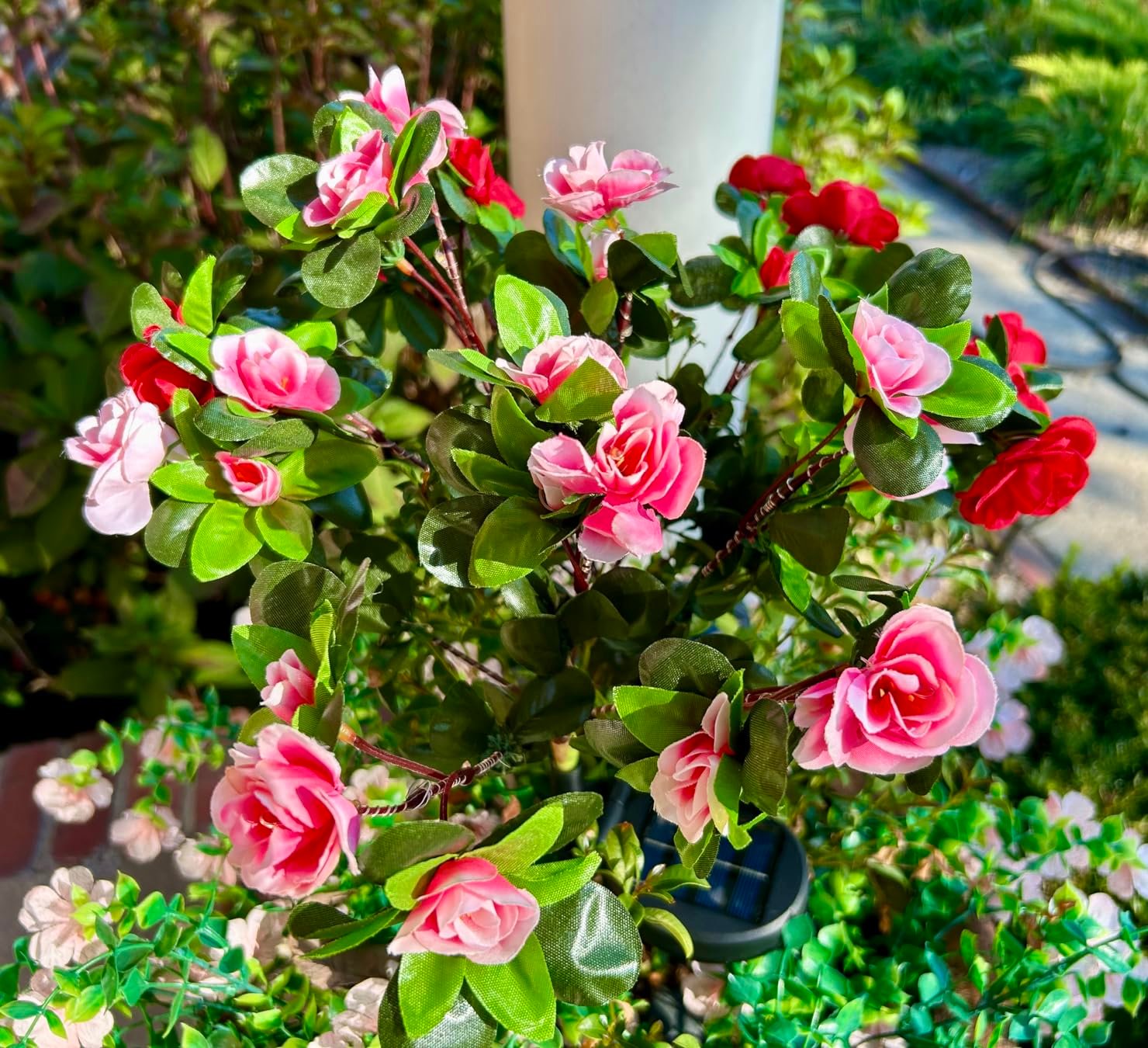 "I bought these for our family memorial garden and they look amazing once the sun goes down. Super easy to set up and they charge well during the day."